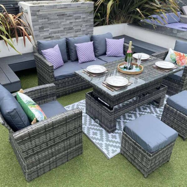 The Cheltenham sofa set is carefully designed to give our lovely customers the ultimate outdoor lounging experience. The set is equipped with a CE certified propane gas fire pit table with auto-ignition, which will provide you warmth on those slightly colder evenings without worrying about the messy ashes.